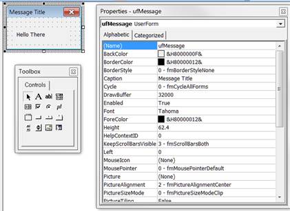A userform is more work than any of the previous options but it comes with its benefits. We start with a simple form with a text message that the user can dismiss by clicking the ‘X’ button. The form contains a simple label as shown below.