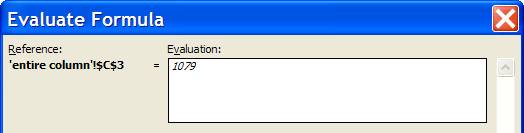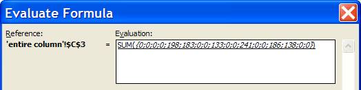 The final step is to carry out the SUM function and the next click of the Evaluate function does just that as in Figure 7. Once done, click the Close button to exit the Evaluate Formula dialog box.