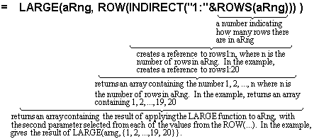Alternative 1:Use =LARGE(aRng,ROW(INDIRECT("1:"&ROWS(aRng))))